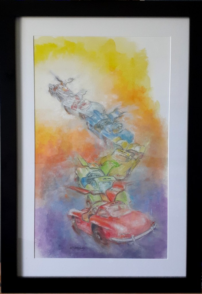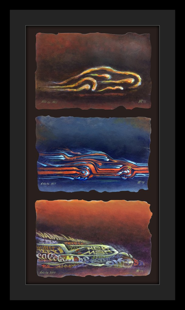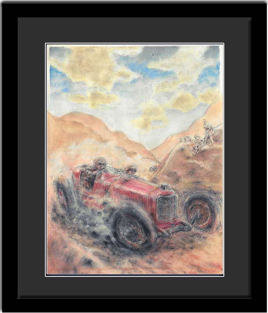 “TRUENO” Pastel on acid-free paper: 17″ x 27″. Framed with double mat 25″ x 35″. 12 lbs. $1,500“PILOTO” 12″ x 11″ x 12″ terracotta with metallic patina. 38 lbs. $2,900“PILOTO” 12″ x 11″ x 12″ terracotta with metallic patina. 38 lbs. $2,900“AUTO RETRATO ca 1970″ mixed media on primed 20″ x 16” canvas board with exquisite texture in 24″ x 20″ frame. 3.2 lbs. $1,956“DEPORTE CRUEL” 16″ x 10″ x 14″ terracotta with metallic patina. 29 lbs. $2,500“DEPORTE CRUEL” 16″ x 10″ x 14″ terracotta with metallic patina. 29 lbs. $2,500“PORSCHE CLASICOS” 62″ x 10″ Framed originals. Grey wash on photo stock. $2,000. Signed individual Giclée prints available.“CUESTA, LIME ROCK PARK” 15″ x 10″ x 9″ terracotta with metallic patina. 21 lbs. $1,250“CUESTA, LIME ROCK PARK” 15″ x 10″ x 9″ terracotta with metallic patina. 21 lbs. $1,250“VICTORIOSO” Terracotta with metallic patina. 10″ x 8″ x 6″. 15 Lbs. NFS“VICTORIOSO” Terracotta with metallic patina. 10″ x 8″ x 6″. 15 Lbs. NFS“ADRENALINA” Acrylic and pastel on 24″ x 12″ stretched canvas on 26.25″ x 14.25″ floating frame. $350“MARK II” 48″ x 12″ pastel on primed canvas. 3 lbs. $250“TURBULENCIA” Acrylic and silver pen on 12″ x 48″ primed canvas. 3 lbs. $350“VELO 1959-1989-2009″ Three acrylic 16″ x 32″ mixed media on archival papers with mat in 20″ x 40” frame. SOLD. Collection of Dr. Ernesto Rosa Individual signed Giclée prints available.“CASCO VELO” Acrylic on acid free 15″ x 10″ ragged paper in 24″ x 19″ frame with mat. 4.8 lbs. SOLD. Collection of Dr. Ernesto Rosa“LA BOMBONERA” Acrylic on primed, stretched canvas 18″ x 14″ in hand made canvas frame 26″ x 23″. $1,850 Signed Giclée prints available.“TERRA” Acrylic, pastel & graphite on 18″ x 14″ primed canvas board in 21.5″ x 17.5″ frame. 3 lbs. SOLD. Collection of Amaury Román“TARGA FLORIO” Pastel on 9″ x 12″ acid free art paper in 17″ x 20″ frame with triple mat. 5.6 lbs. $2501987 IMSA ARROW Magazine Christmas cover. Opaque watercolor on art board. Image 16″x 10″ Frame w mat 23″x 18¨ $375. Magazine included.1988 IMSA ARROW Magazine Christmas cover. Opaque watercolor on art board. Image 14″x 9.5″ Frame w mat 22″ x 17¨ $375 Magazine included.“TESTA ROSSA” 20″ x 24″ Acrylic, pastel & graphite on primed canvas. $200. Signed Giclée prints available.“ALAS” 14″ x 25″ on primed canvas with double mat and frame. 4 lbs. $1,250“24 HRS” Acrylic on primed canvas 20 ” x 16″ with hand made31″ x 35″. $1,250. Signed Giclée prints available.“FEMME FATALES” Three 11″ x 14″ mixed media renderings on primed canvas boards together in 42″ x 21″ frame with mat. $1,150. Individual signed Giclée prints available.