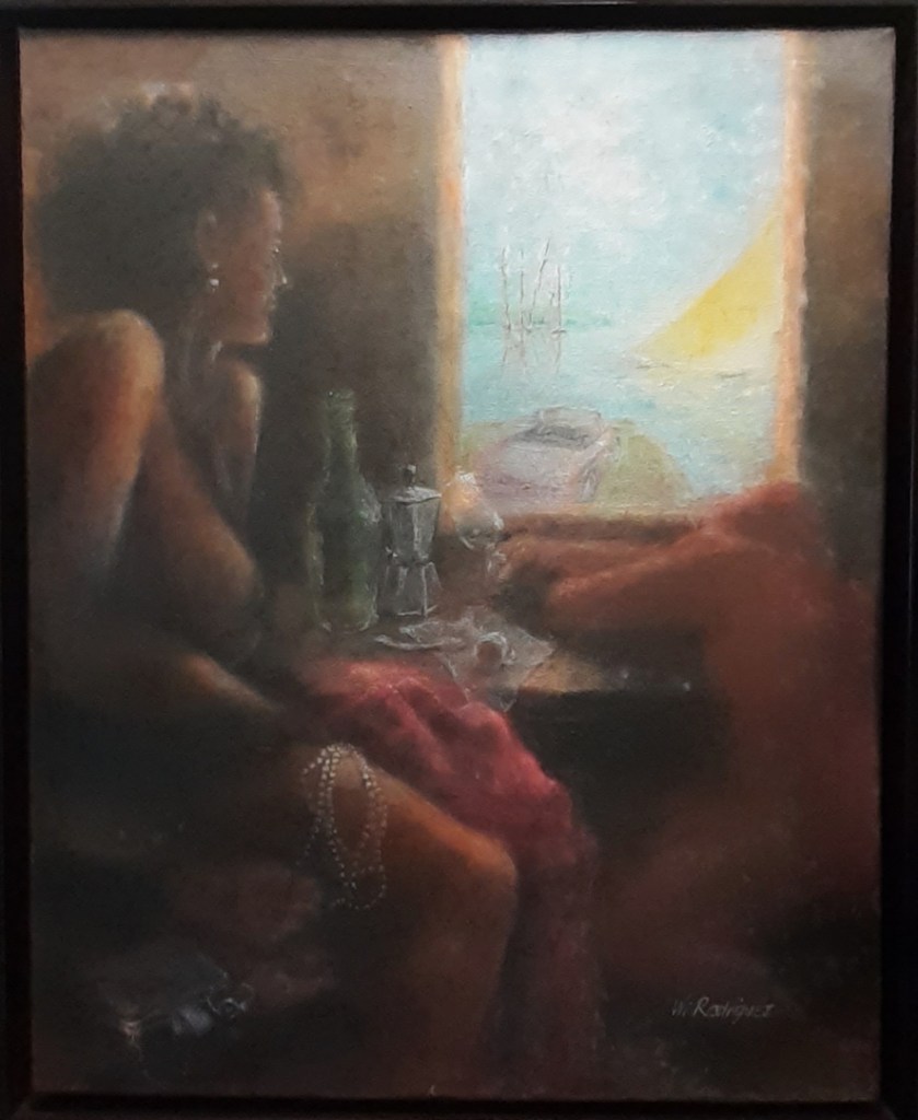 “RENDEZVOUS” Pastel over acrylic on primed 24″ x 30″ canvas in 25.5″ x 31.5″ floating frame. 8 lbs. $1,850“ABSTRACT O VIII” Acrylic on 14″ x 18″ canvas board with complementary 20″ x 24″mat and frame. $300“ABSTRACCIÖN V” Acrylic & pastel on primed, stretched canvas 24″ x 36″. 3 pounds. $1,250“ABSTRACTO IV” Acrylic & pastel on 18″ x 14″ canvas board with complementary mat in 24″ x 20″ frame. $250“CONTENIDA” Acrylic & pastel on primed, stretched canvas 24″ x 36″. 8 pounds. $1,650“ABSTRACTO VI” Acrylic & pastel on primed, stretched canvas 24″ x 36″ in a floating frame. 8 pounds. $800 “PTEROCARPUS” Our nature preserves at risk. 24″ x 36″ Acrylic & pastel on primed, stretched canvas. 3 lbs. Collection Cynthia Garcia Coll, Phd “ABSTRACTO III” Acrylic on 10″ x 15″ canvas board with complementary mat and 15.5″ x 20.5″ frame. $250“LIBERTAD CONDICIONAL” Mixed media on 8″ x 12″ acid-free art paper in 15.5″ x 19.5″ frame with complimentary mat. 3.6 lbs. $300 Signed Giclée prints available. “BAILE DE YAUTIA” Acrylic on primed, stretched canvas. 20″ x 16″. $200“LA ENTRADA AL ESCONDITE” Acrylic & pastel on primed, stretced canvas. 24″ x 24″. $450“ABSTRACTO IX” Acrylic & pastel on 16″ x 20″ canvas board with frame. $200“STUDENT MODEL” 11″ x 15″ Graphite on laminated newsprint in a 19.5″ x 23.5″ complementary double mat & frame. $550“TRUENO” Pastel on archival 17″ x 27″ paper. Framed with double mat 25″ x 35″. 12 lbs. $1,350. Signed Giclée prints available.“LA BOMBONERA” Acrylic on primed canvas 18″ x 14″ in a 26″ x 23″ in canvas frame. $1,275. “ADRENALINA” Acrylic and pastel on 24″ x 12″ stretched canvas in 26.25″ x 14.25″ floating frame. 3.5 lbs. $875. Signed Giclée prints available.1988 IMSA ARROW Magazine Christmas cover. Opaque watercolor on art board. Image 14″x 9.5″ Frame w mat 22″ x 17¨ $375. Magazine included.1987 IMSA ARROW Magazine Christmas cover. Opaque watercolor on art board. Image 16″x 10″ Frame w mat 23″x 18¨ $375. Magazine included.“AUTO RETRATO ca 1970″ Acrylic, pastel and graphite on primed 20″ x 16” canvas board with exquisite texture in 24″ x 20″ frame. 3.2 lbs. $1,956.